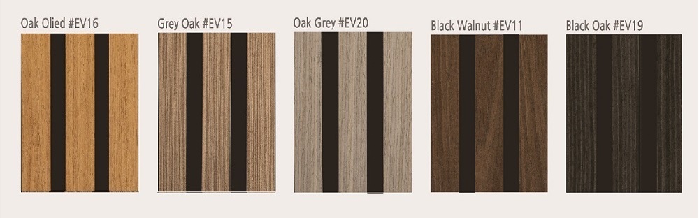 • 슬랫(Slat,쫄대)는 E1등급의 방염 컬러 MDF 위에 원목 베니어(무늬목)을 접착하여 만듭니다.