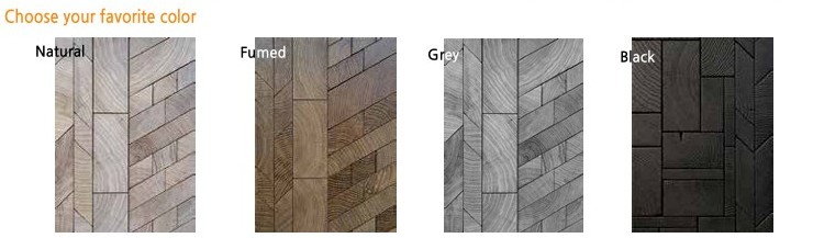 나무의 끝면이 위로 보이도록 배열하여 시공합니다.독특하고 예술적인 디자인을 연출할 수 있습니다. 내구성이 뛰어나고 딱딱한 물체에 의한 공격이나 스크래치에 강합니다. 그러므로 롱그레인에 비해 1.5~2배 이상의 내구성을 보장합니다. 단. 핸드메이드로 만들기 때문에 비용이 많이 들고, 고가이므로 명품 매장이나 최고급 공간에 주로 사용됩니다.