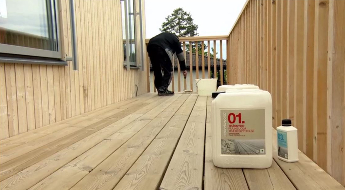 • OrganoWood® 규화제로 처리된 목재의 유지 보수는 OrganoWood® 03 목재세척제를 사용하여 세척하고, Organo Wood® 02 탄성발수제를 목재표면에 재도포하여 마무리합니다. 이것은 발수성이 향상된 목재 표면을 생성하고 부패균 성장의 위험과 건조한 날씨로 인한 균열의 양을 최소화합니다