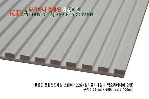 • KD 타지아나 음향보드패널은 엄선된 원목에서 생산된 특수 무늬목을 사용합니다. 처음으로 적용된 백오동 무늬목은 화이트 무기질 보드와 화이트 흡음보드를 적용하여 보다 세련되고 스타일시한 분위기를 만들어집니다.