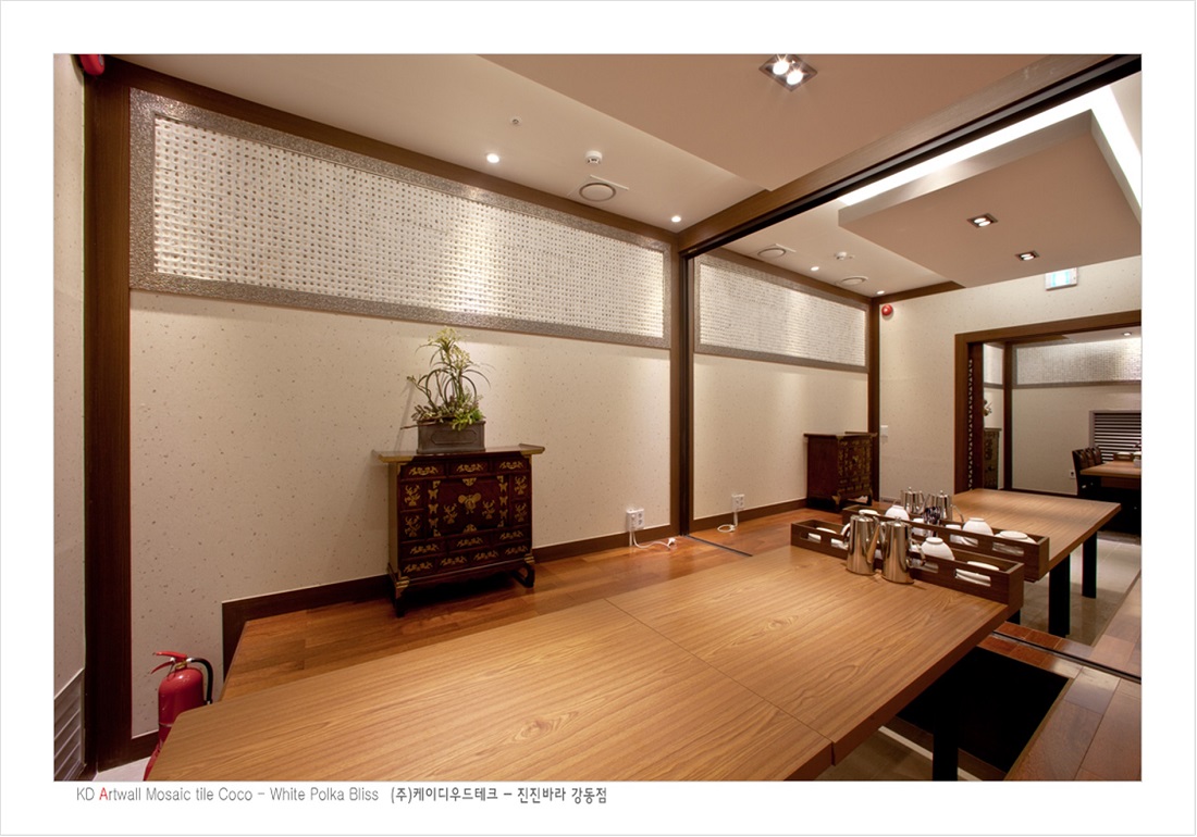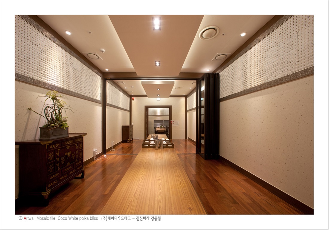 요즘 아주 인기좋은 한정식집 "진진바라" 강동점에 케이디아트월이 인테리어 소재로 쓰였습니다.