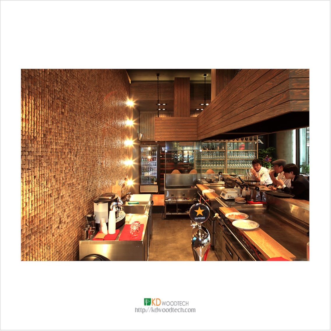 일본의 소니TV에서 레스토랑을 촬영, 일본 현지에서 방영한 다음부터 일본 관광객의 예약이 폭주한다고 합니다. 내추럴 블리스의 질감이 와인 마개로 사용되는 코르크와 유사하여 와인바 인테리어 소재로서의 반응이 아주 좋습니다.