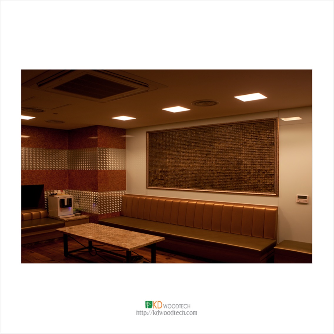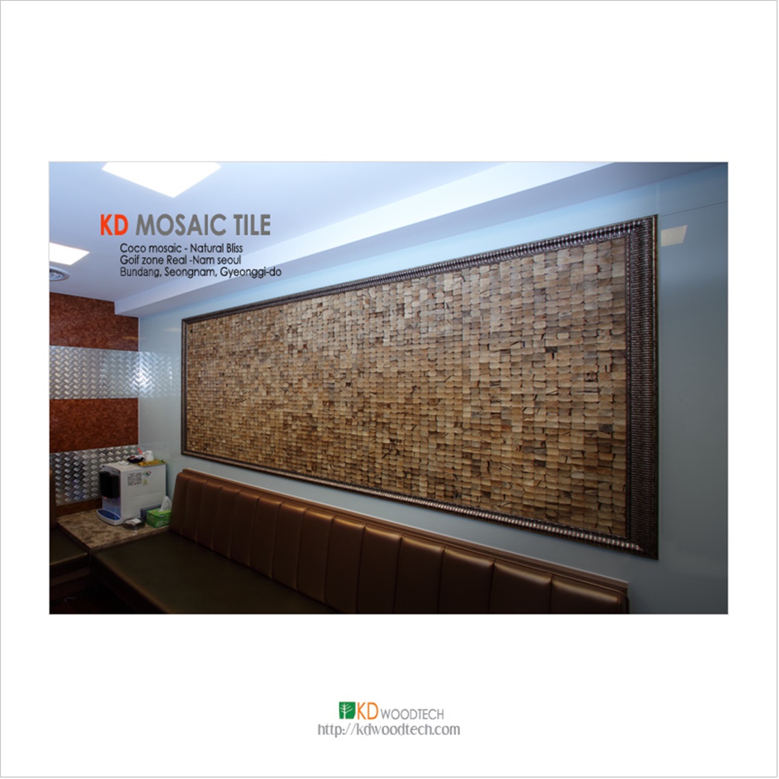 모자이크 타일로 액자를 만들어 한쪽 벽면을 장식하였습니다. 골프존 리얼 남서울점(분당소재)