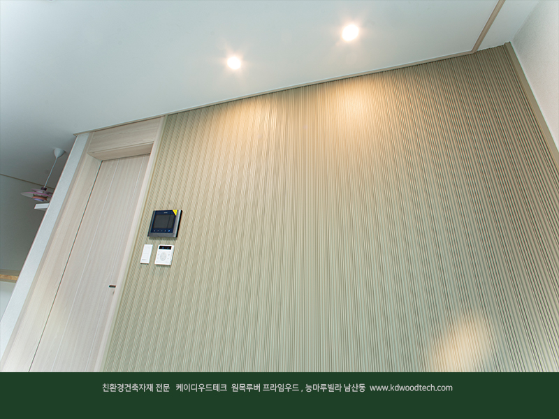 아트월 사용 제품 : 케이디우드테크 천연 원목 루버와 목재 타일