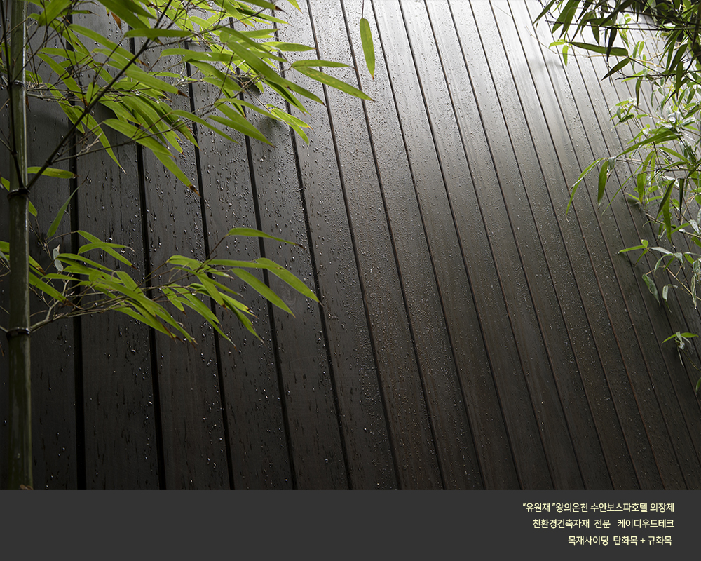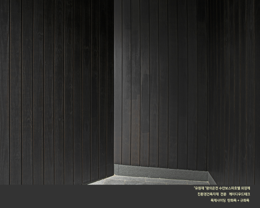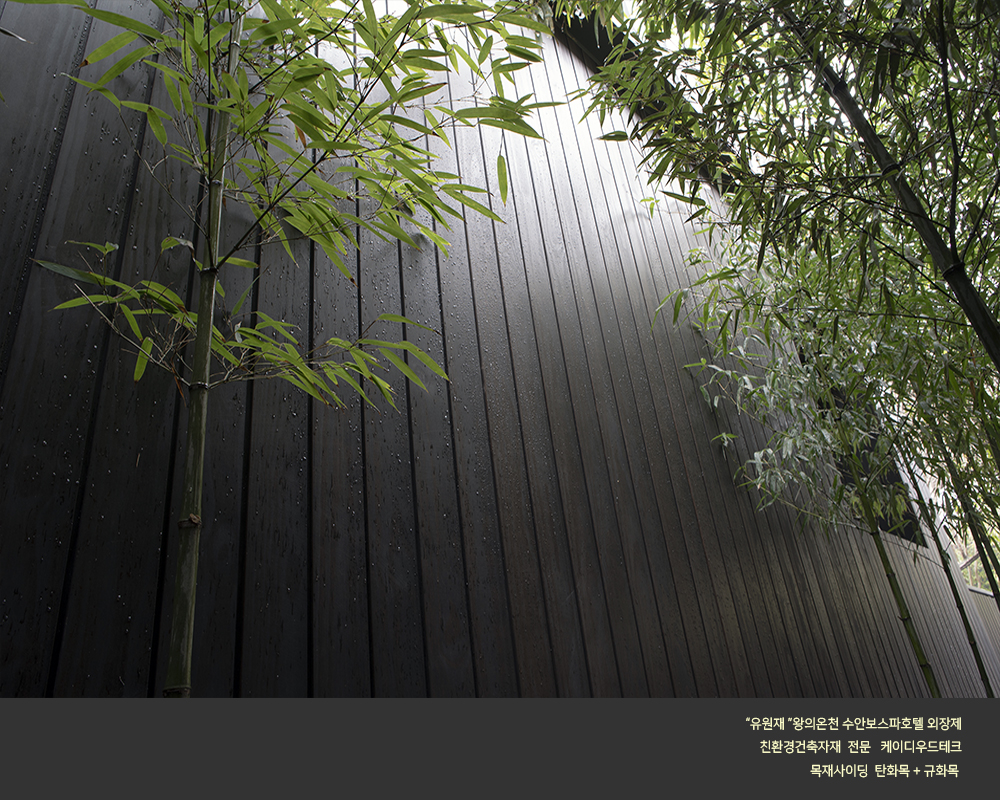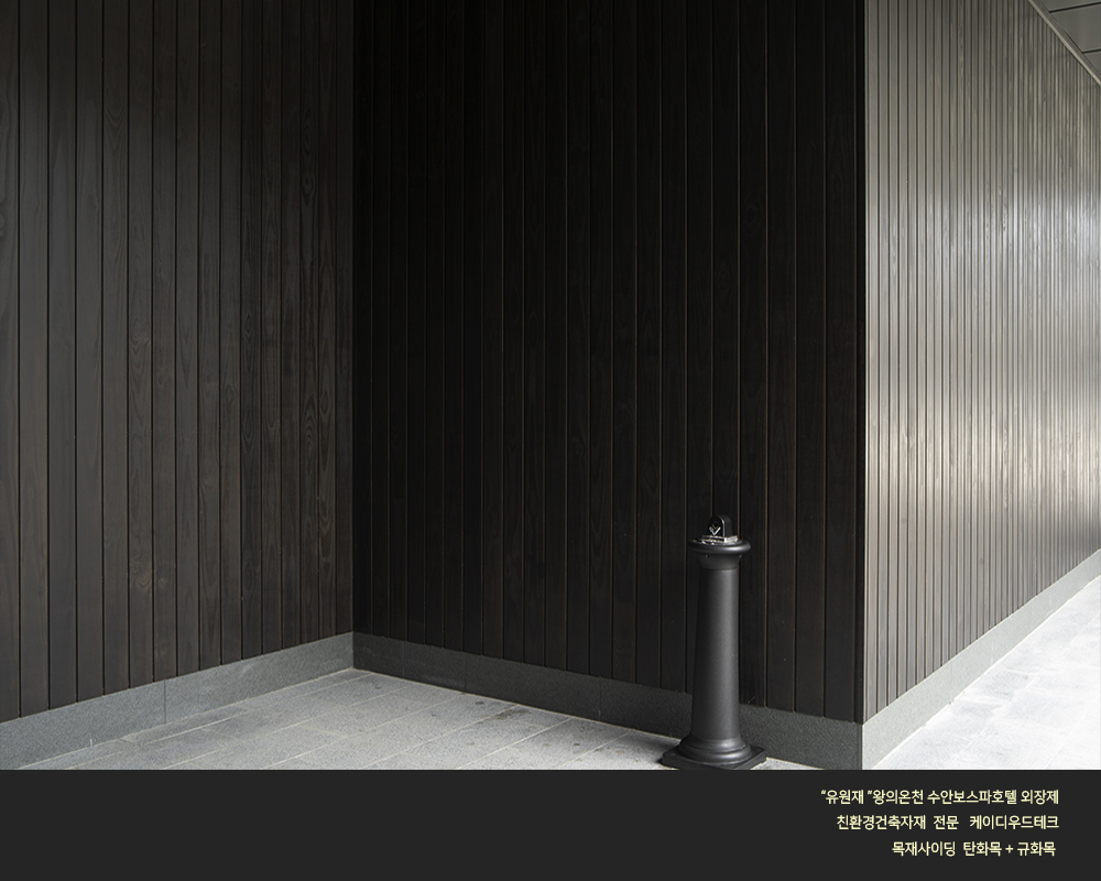수안보 온천호텔 "유원재" 외장에 케이디우드테크의 탄화목과 규화목이 시공되었습니다.