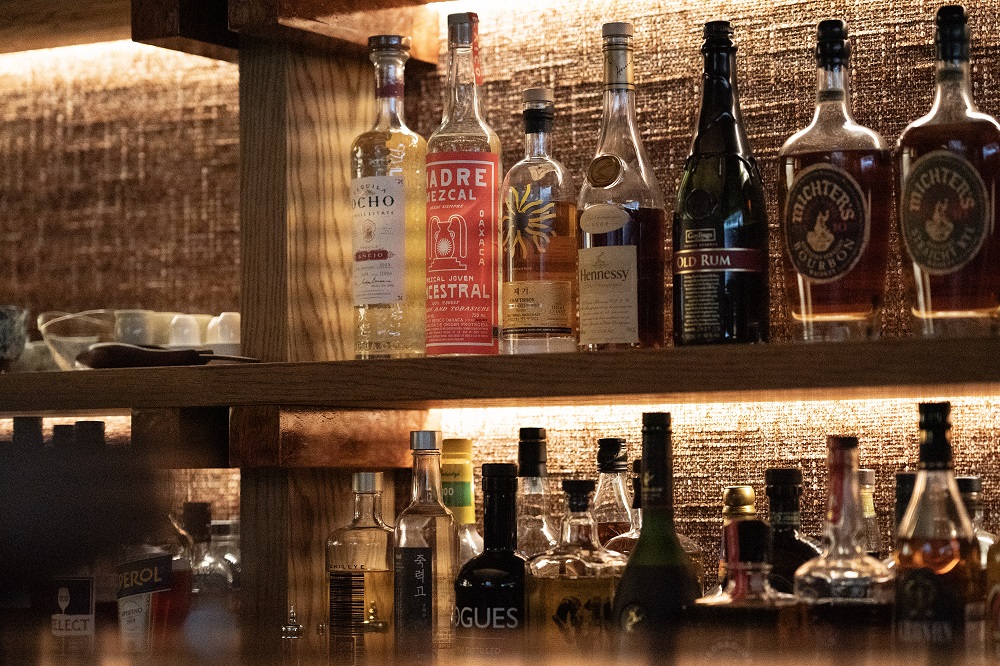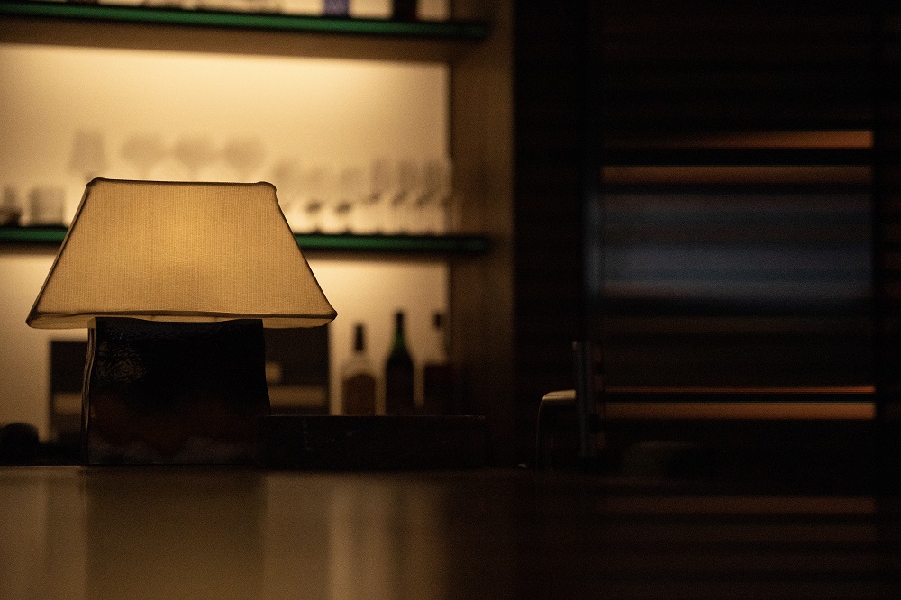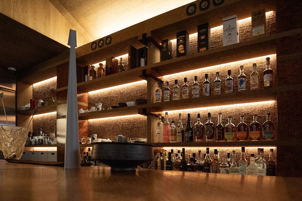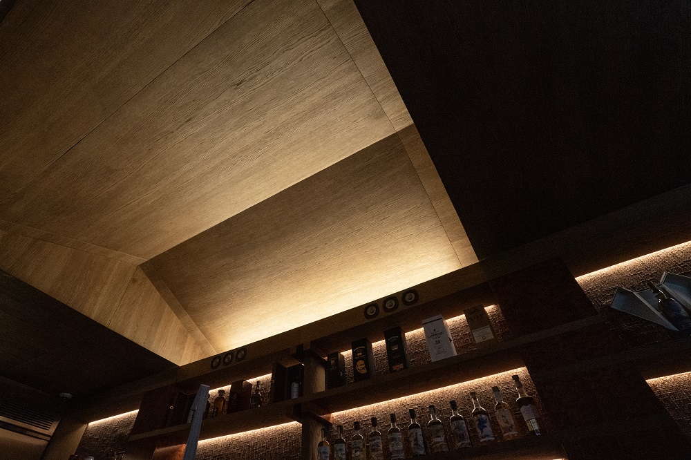 비정형적인 표면의 크랙과 깊이 있는 톤이 모던한 바의 디자인을 더욱 돋보이게 합니다.