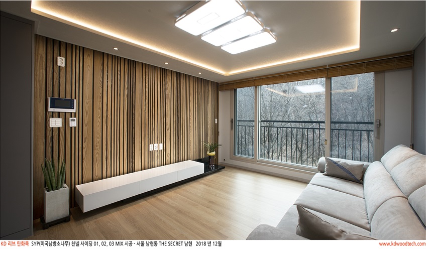 [ 탄화목 ] 빌라인테리어 거실 아트월로 시공된 탄화목 믹스 시리즈