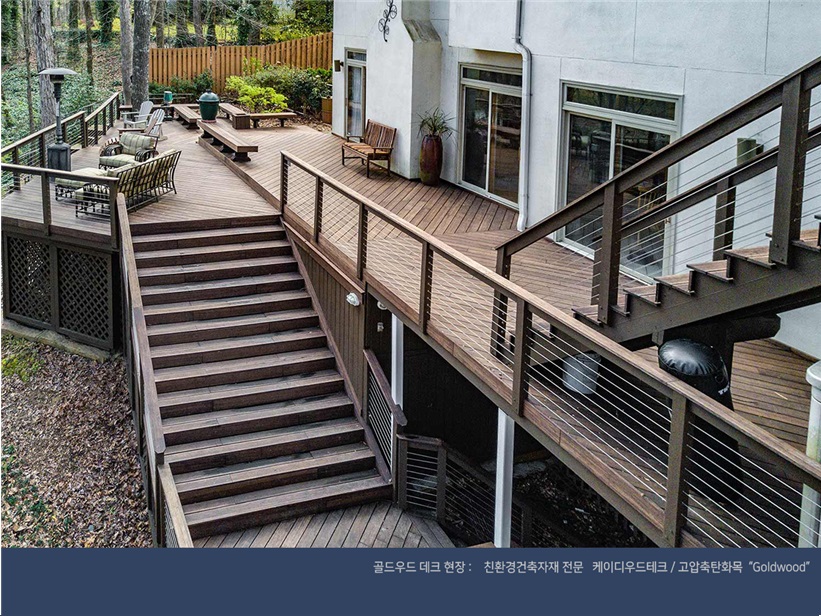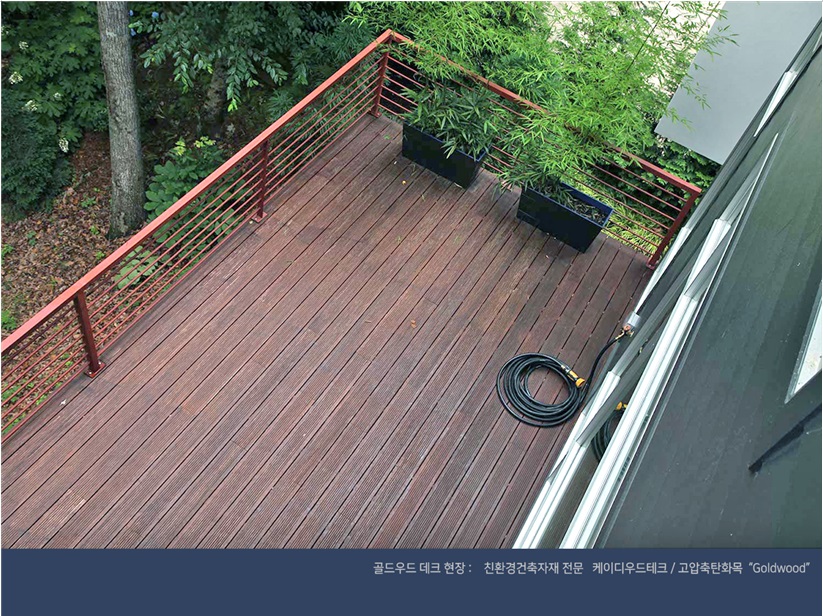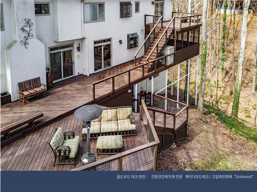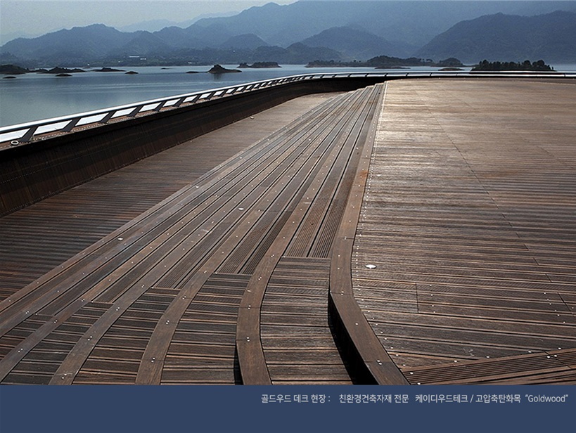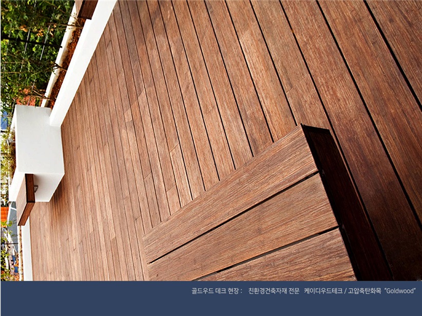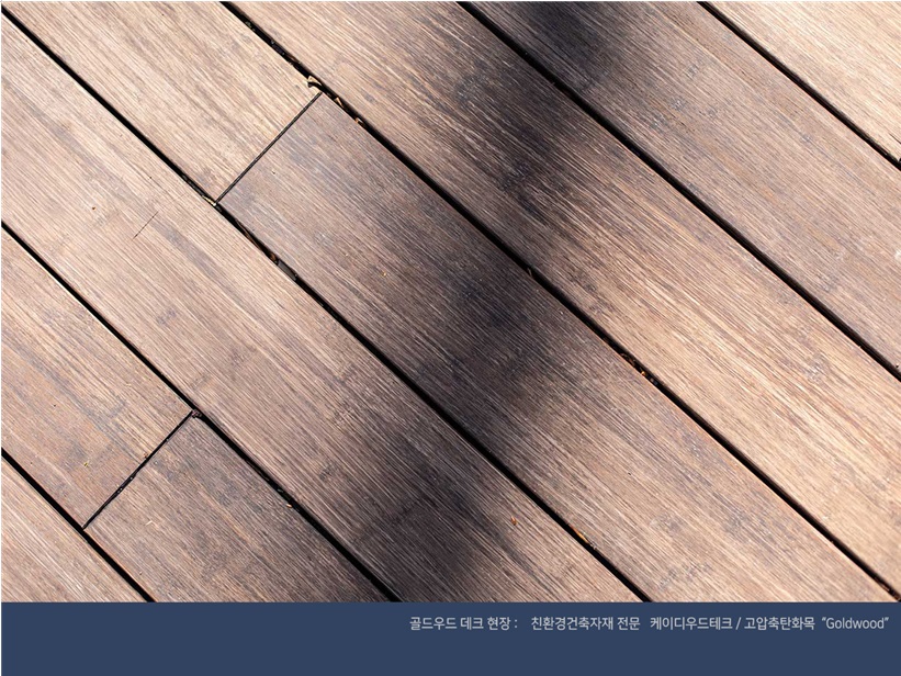 골드우드 두가지 두가지 색상으로 진행 가능합니다.압축탄화목 골드우드 데크