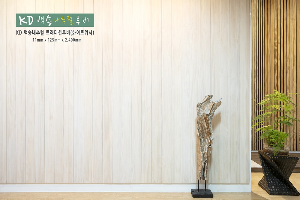 벽지대신 원목루버오동나무 프라임우드에 이어 백송루버 트래디션 화이트워싱을 제안드립니다.