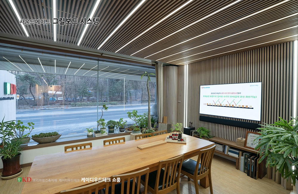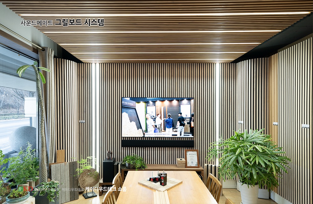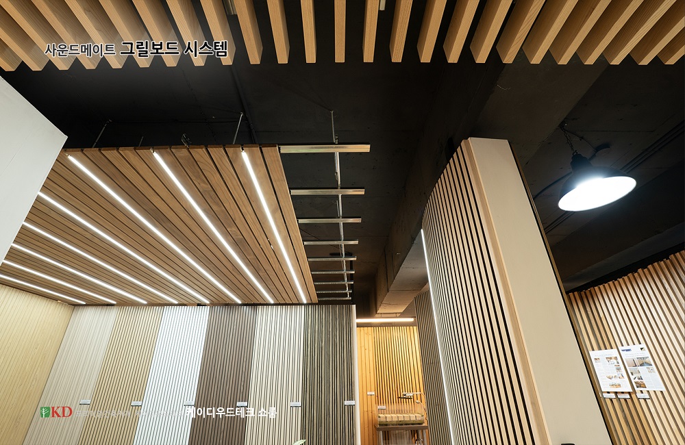 KD우드테크 쇼룸에 어쿠스틱 그릴루버를 설치했습니다.