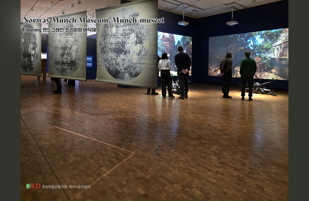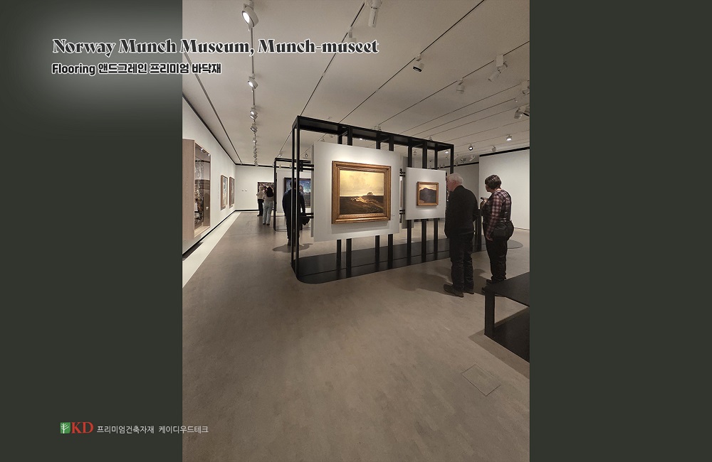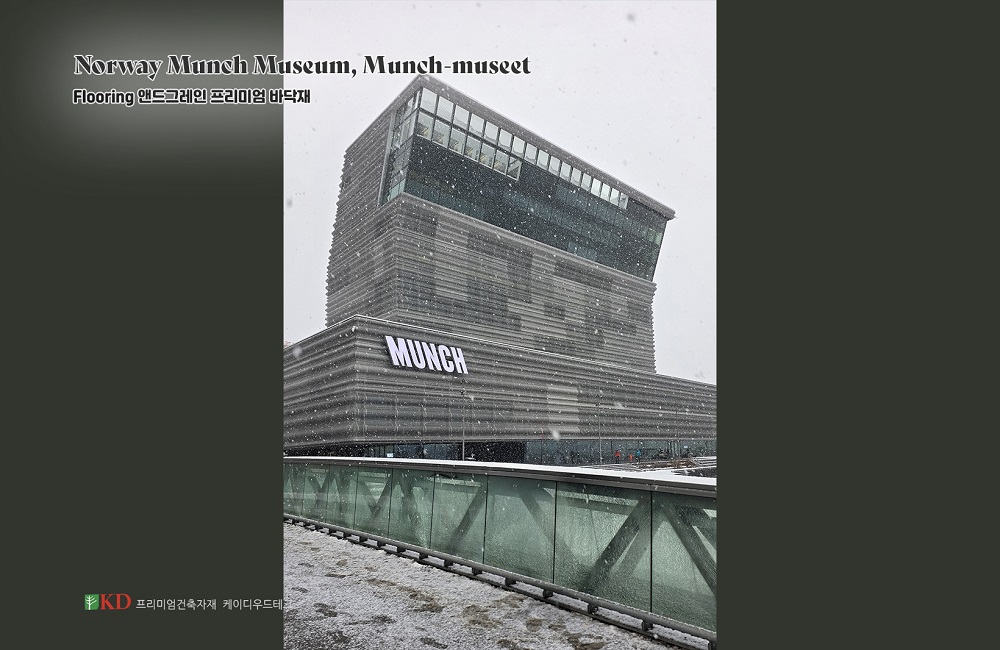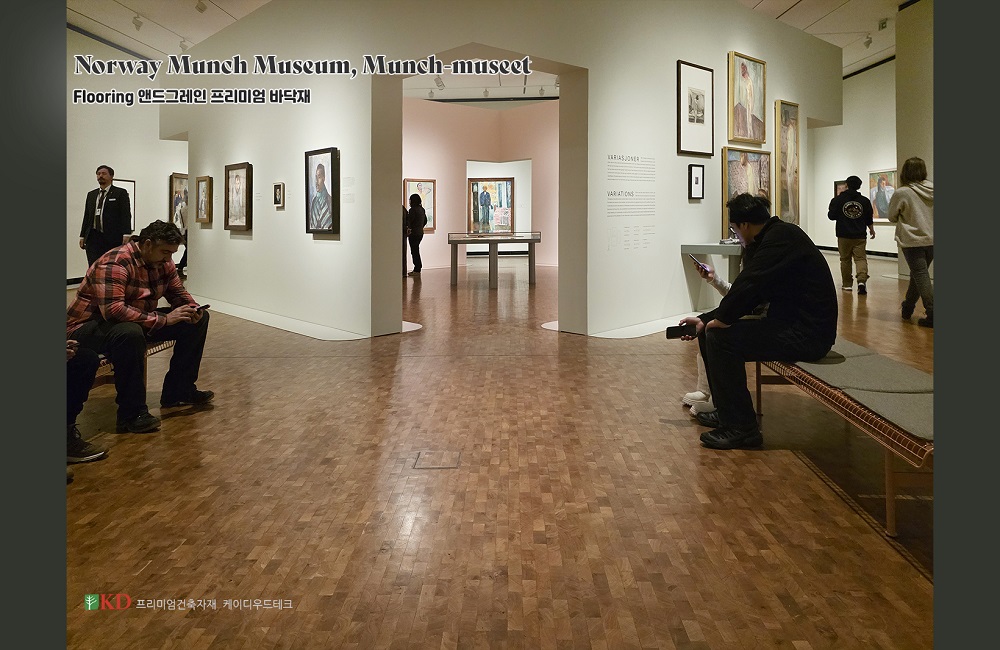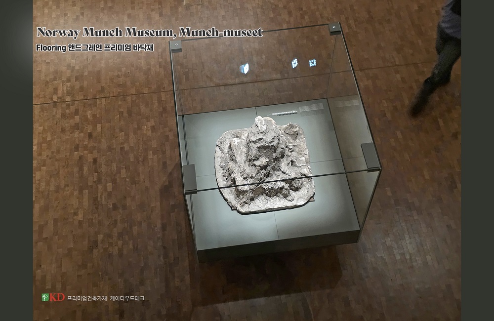 노르웨이 오슬로에 위치한 뭉크 미술관은 세계적인 화가 에드바르 뭉크의 작품을 소장한 상징적인 문화공간입니다. 이번 현장에서 직접 촬영한 바닥 마감은 바로 앤드그레인(End Grain) 프리미엄 원목 바닥재입니다.2025년 공식 런칭된 신개념 하이엔드 우드 플로어 브랜드로, 예술 공간에 걸맞은 품격과 기능성을 동시에 보여주고 있습니다.
