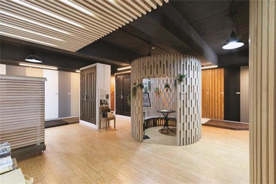 특히 이 전시장은 음향 특성을 지닌 사운드메이트의 다양한 제품군을 적극 디자인해 TV거실존, 천장존, 웨이브 벽마감 존 등을 설치하는 등 관람객들의 편의를 도모헸다.또한 건물 외부에 노출되는 건축자재로 조경에 필요한 원형 목재원두막인 우드세움을 비롯해 외벽과 테라스를 위한 탄화목, 규화목, 데크존, 현관문과 목재 관리재를 비치해 관람객들이 제품의 특징을 살펴보고 선택이 용이하도록 했다는 게 회사측의 설명이다.