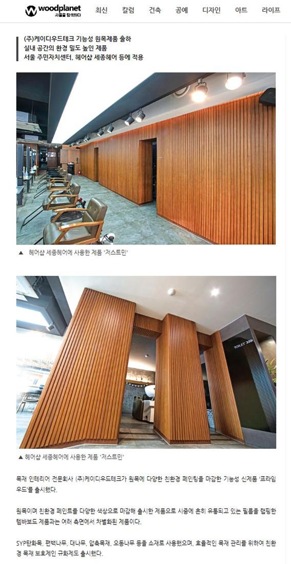 언론보도&광고 [언론보도] { 우드프래닛 ] 친환경 페인트로 마감한 원목루버 , 공공시설과 상업공간에 설치 2021.7