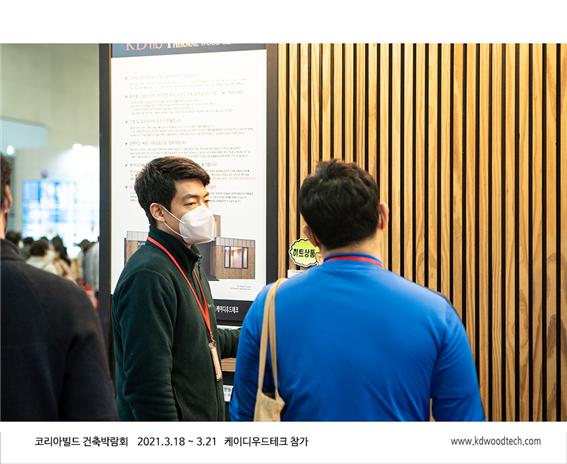 친환경건축자재 목재건축자재 전문기업 "케이디우드테크" 는 금번 전시에서 추가로 사운드메이트 SOUNDMATE 를 출시하고 방음과 흡음벽에 대한 솔루션을 다양하게 전시 상담하였습니다.특히 음향벽 사운드메이트에 대한 관심이 폭증하였습니다