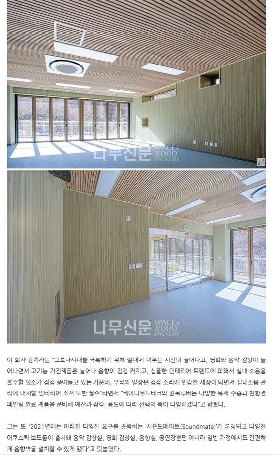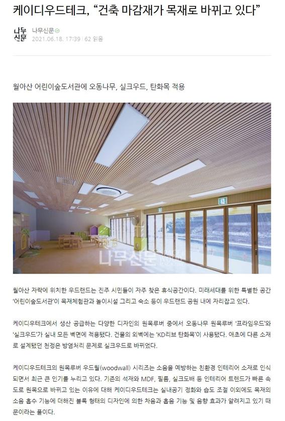 언론보도&광고 [언론보도] [ 나무신문 2021.6.18 ] 케이디우드테크, 건축 마감재가 목재로 바뀌고 있다 2021.6