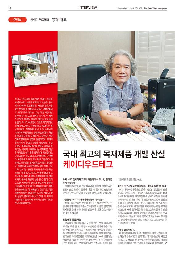언론보도&광고 [언론보도] [목재신문 659호 2020 0901] INTERVIEW 케이디우드테크 홍탁 대표 2020.9