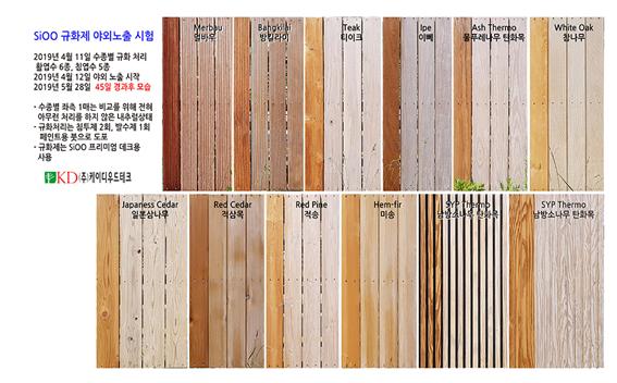 [뉴스레터] [시우 SIOO 규화재] 야외노출 시험 결과 공개 - 12종 목재 2019.6.13