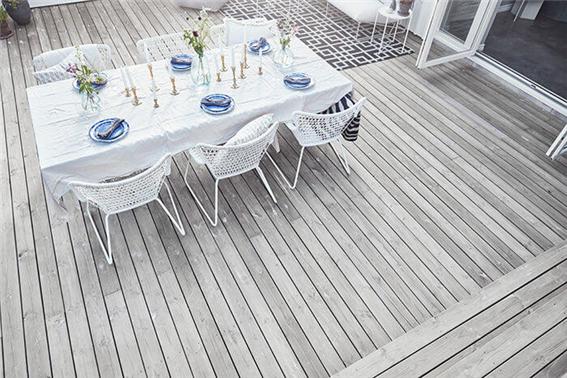규화 처리된 목재는 보통 2개월이 지나면 햇빛이나 수분에 의해 아름다운 은회색으로 변합니다. 소나무의 경우 처음 한달간 핑크색으로 변했다가 시간이 지남에 따라 점점 흰색(White)으로 변하고 2개월이 경과하면 은회색으로 변합니다. 규화처리된 목재는 옹이부분이든 변재. 심재든 구분하지 않고, 심지어는 그늘진 곳이나 직사광선이 내려 쬐는 곳이든지 균일하게 색상이 변합니다. 침엽수, 활엽수, 열대목재, 온대목재, 시베리아목재든 구분하지 않고 균일하게 은회색으로 변합니다.