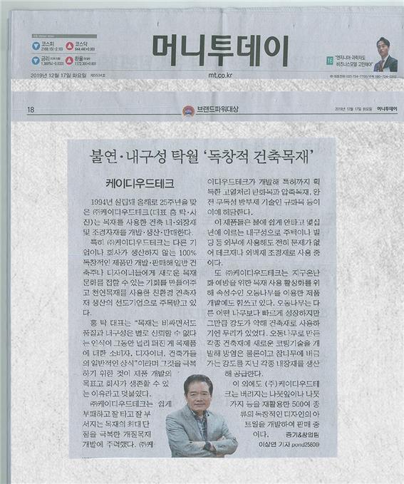 언론보도&광고 [언론보도] [머니투데이] 대한민국 브랜드파워 대상 Korea Brand Power Awards 수상 기사, 2019.12.1…