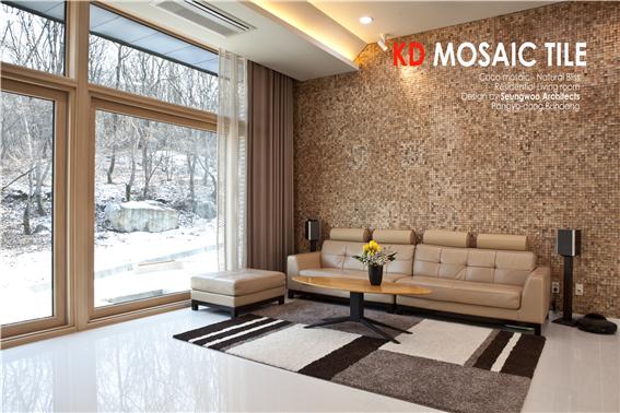 문명의 발달로 많은 혜택을 누리고 있는 도시인이지만, 자연으로부터 점점 더 격리되고 있는 현대인이 진정 그리워하는 것은 무엇일까? KD mosaic tile 은 천연소재가 지니고 있는 자연미를 최대한 살리고 인공적 요소를 최소화한 제품이다. 이러한 특별한 배려로 인하여, 어쩌면 손상될 수도 있었던 아름다운 자연의 흔적들을 때로는 편안한 거실에서 다시 느끼고 감지하게 된 것이다.