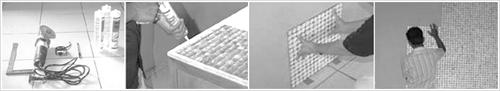 5. 넓은 면적에 타일을 설치할 경우, 목재의 수축팽창을 고려하여 타일과 타일 사이에 1-2mm의 간격 틈을 주고 타일을 설치한다. 그리고 그 틈새는 실리콘 실란트로 충진하고 오버플로우 된 접착제는 헌 옷가지로 깨끗이 닦아낸다.5. 재단해야 하는 경우, 그라인더를 사용하여 원하는 크기로 절단하여 사용한다.