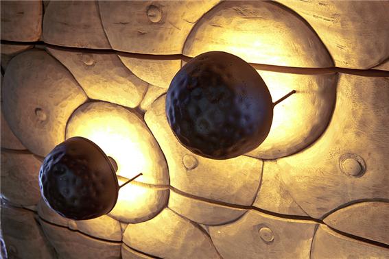 비치우드(Beach wood) 판재에 조각하여 벽장식용 월아트 램프를 제작하였습니다.