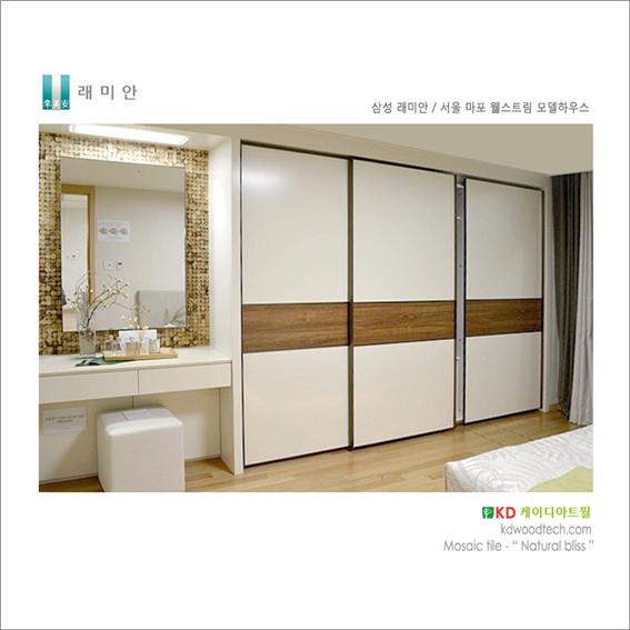 KD ART WALL / 코코넛 모자이크 타일 / 내츄럴 블리스( natural bliss )- 서울 마포 웰스트림 (현석2 지구) / 안방 침실 매입형 화장대