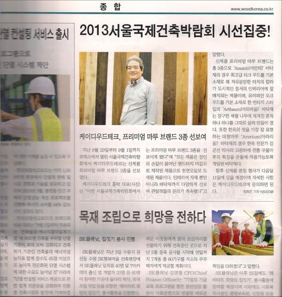 [언론보도] 케이디우드테크, 프리미엄 마루 브랜드3종 선보여-한국목재신문 2013년 9월 9일 제364호 2013.9