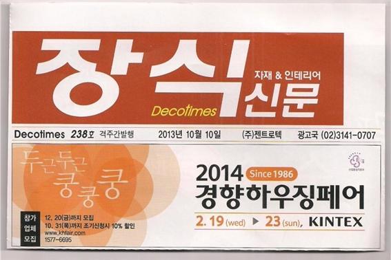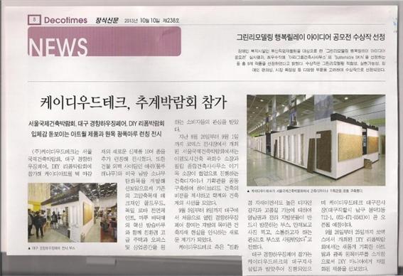 언론보도&광고 [언론보도] 케이디우드테크,추계박람회 참가 장식신문 2013년10월10일자 2013.10