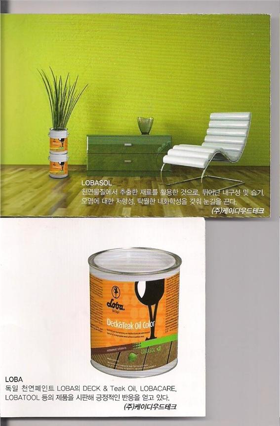 독일천연페인트 LOVA의 DECK & Teak Oil, LOVACARE, LOBATOOL 등의 제품을 시판해 긍정적인반응을 얻고있다.