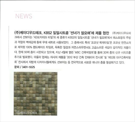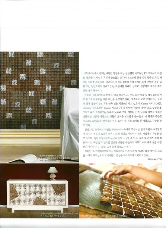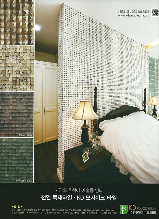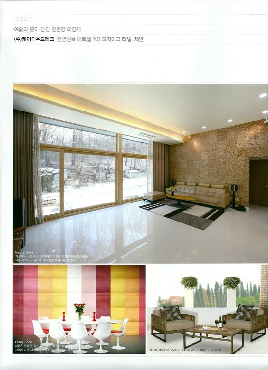 예술의 혼이 담긴 친환경 마감재 천연원목 아트월 'KD 모자이크 타일' 제안 인테르니( INTERNI ) 5월호 특집기사 및 광고