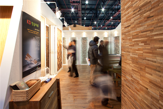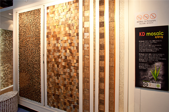 당사는 현재 SETEC ( 서울 강남구 학여울역 ) 에서 열리고 있는 제28회 MBC 동아전람 건축박람회에 참가하여목제 타일 아트월 < KD 모자이크 타일 >을 선보이고 있습니다.