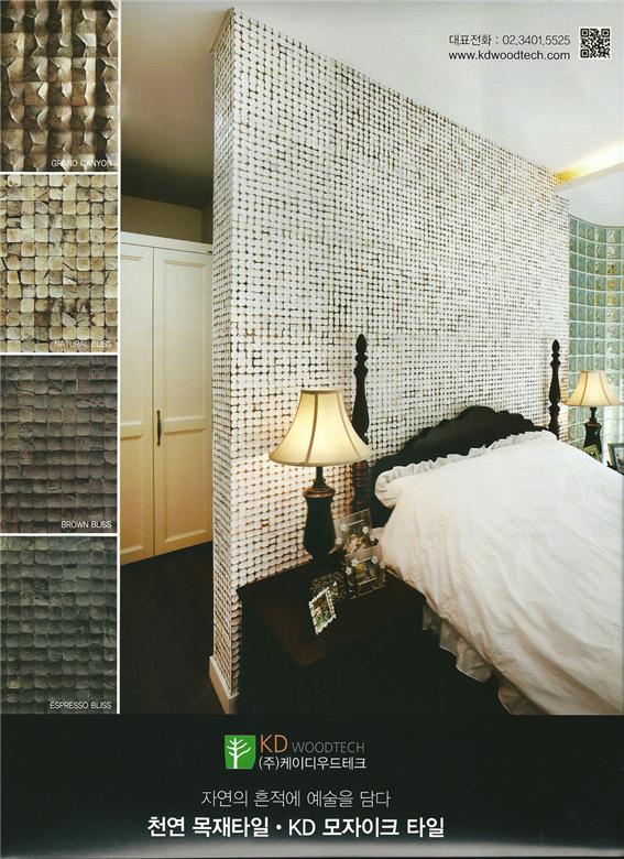 판교 전원주택의 침실에 시공된 화이트파티나 ( White Partina ) 제품이 주인공이 되었네요. 동장군을 물리치고 다가온 새 봄의 산뜻한 기운과 잘 어울릴듯합니다.지난 1월 27일 부터 열렸던 <동아전람> 참가 소식에도(주)케이디우드테크의 KD모자이크 타일 중에서 코코모자이크 타일이 소개되었습니다.