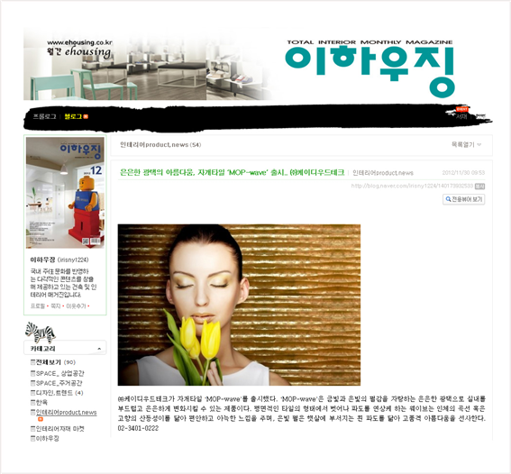 언론보도&광고 [언론보도] 은은한 광택의 아름다움, 자개타일 ‘MOP-wave’ 출시 [이하우징] 2011.11