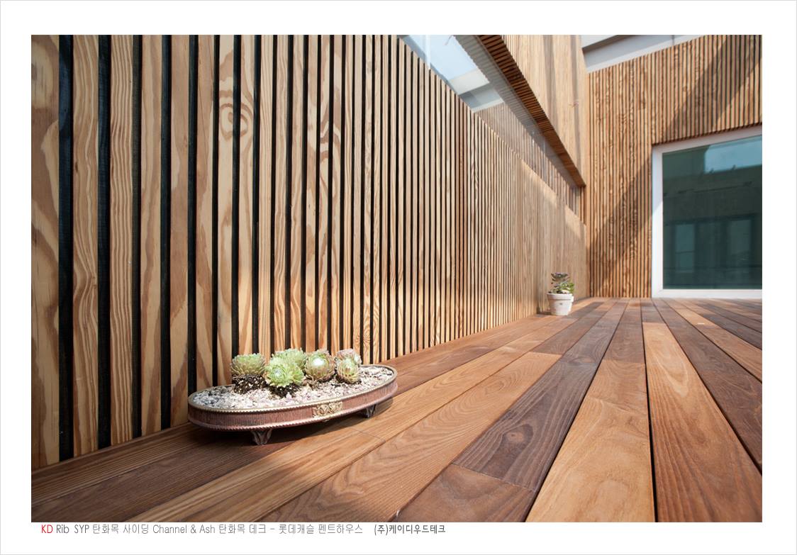 - 실외 : 건축물의 외부 파사드, 데크, 구조재, 마감재