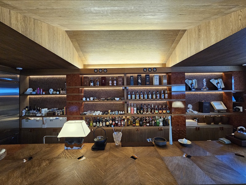 비정형적인 표면의 크랙과 깊이 있는 톤이 모던한 바의 디자인을 더욱 돋보이게 합니다.