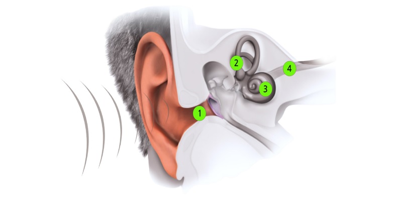 2.고막에 붙어있는 3조각뼈(이소골)가 진동을 20dB로 증폭해서 달팽이관으로 전합니다.