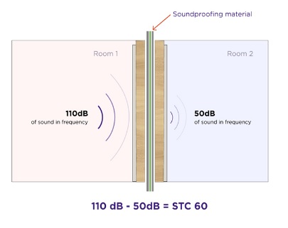 벽의 STC측정은 실험실 조건이나 현장에서 수행할 수 있습니다. 벽은 다른 주파수의 음파에 영향을 받고 음력손실(데시벨)이 반대쪽에 기록됩니다. 결과적으로 다른 주파수에서 전송손실(TL)은 그래프와 주어진 전체 STC값에 표시될 수 있습니다.그래프를 연구하면 파티션의 주파수 응답 프로파일도 볼 수 있습니다. 예를 들어, 파티션이 공명할 주파수를 보여주는 '우연의 하락' 으로 알려진 눈에 띄는 하락을 볼 수도 있습니다.