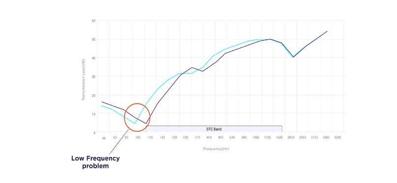 STC 시스템에서 생활 소음은 걷기,요리,씻기,말하기 등의 일상적인 가정 활동을 중심으로 형성되었습니다.(STCBand:110~1600Hz), 우리나라 건축법은 저주파는생략되었습니다. 저주파 소음은 산업기계 및 차량과 천둥소리,저음을 만드는 악기나 서브우퍼의 베이스 주파수에 이르기까지 다양한 소스에서 방출됩니다. 불행히도,많은 건축재료와 벽체 시스템이 차음(방음)에 크게 실패하는 것은 이러한 저주파 범위에 대한 대처를 잘못했기 때문입니다.