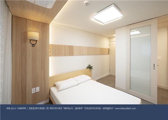 위례신도시 다가구주택에 사용된 케이디우드테크 프라임우드(오동나무 루버)는 가볍고 단열효과가 좋은 오동나무 원목 100%를 원재료로 하여 디자인 작업을 통해 감각적이며 친환경적인 제품으로 탄생됐다.다양한 색상과 디자인으로 출시돼 있어 현장 요구에 맞게 작업이 가능하고 새집증후군이나 알러지의 주범으로 꼽히는 실크벽지를 대체할 수 있으며, 가벼운 원목루버로 일반인도 쉽게 완성할 수 있다. 일반 원목의 1.5배 이상 보온 단열효과를 가지고 있음에도 높은 가성비를 유지해 케이디우드테크의 인기 제품 중 하나로 꼽힌다.이 외에도 에버히노끼(편백나무 무절)는 삼림욕 효과가 높은 피톤치드를 가장 많이 함유한 편백나무 최상품으로 디자인 되었으며, 코코넛타일은 천연 코코넛껍질 100%로 만들어지는 핸드메이드 타일로 멋진 아트월을 만들 수 있다. 케이디우드테크는 서울시 송파구 오금동과 대구에 있는 지사 상설전시장에서 건축 내외장재 전체를 전시하고 있으며, 건축 상담과 견적 작업을 돕고 있다. 보다 자세한 정보는 공식 홈페이지 및 상담 전화를 통해 확인 가능하다.