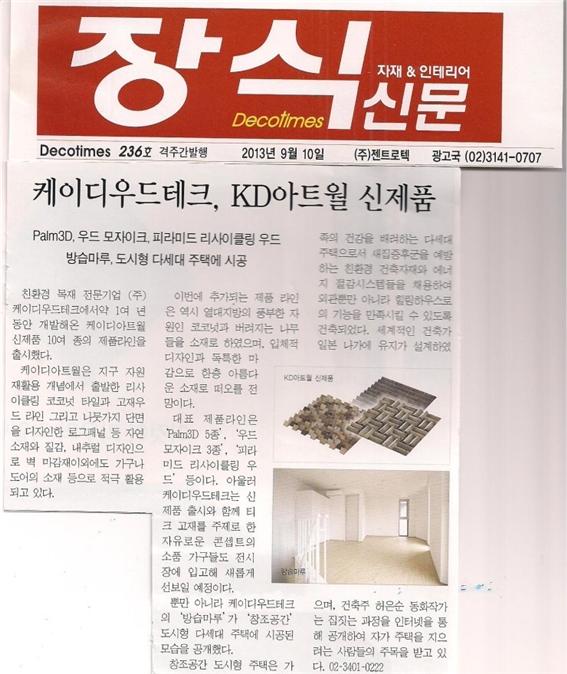 [언론보도] 장식신문 기사 (주)케이디우드테크,KD아트월 신제품 2013.9