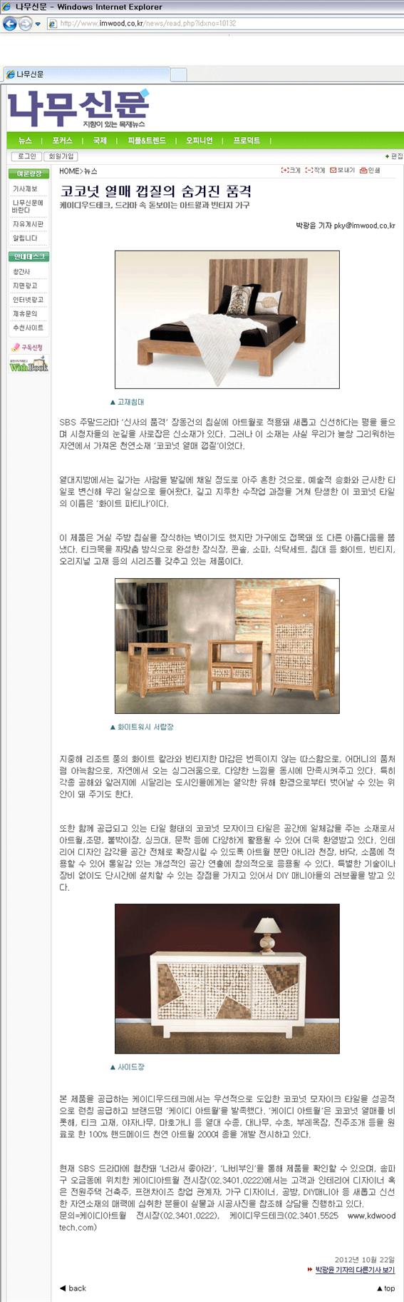 언론보도&광고 [언론보도] 코코넛 열매 껍질의 숨겨진 품격 - 나무신문 10.22 웹기사 2012.10
